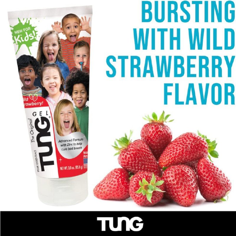 جل تونج للأطفال بنكهة الفراولة. يحتوي الجل على الزنك. الجل يقضي بشكل طبيعي وآمن على رائحة الفم الكريهة.